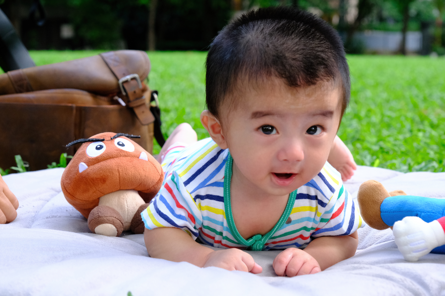Dorensoy是个充满好奇心的小探险家。今天,他来到户外的草地上,这是他的新发现地。他的眼睛闪闪发光,对周围的一切都感到新鲜和兴奋。虽然旁边有来自超级马里奥世界的玩具——毒蘑菇和超级马里奥,但Dorensoy似乎更专注于自己的小冒险。他用小手触摸着草地,感受着自然的温柔,偶尔对着镜头露出甜美的微笑,好像在说:“看,我发现了新世界!”这不仅仅是一个简单的游戏时光,对Dorensoy来说,这是一次真正的探险,他在这个过程中学习和成长。