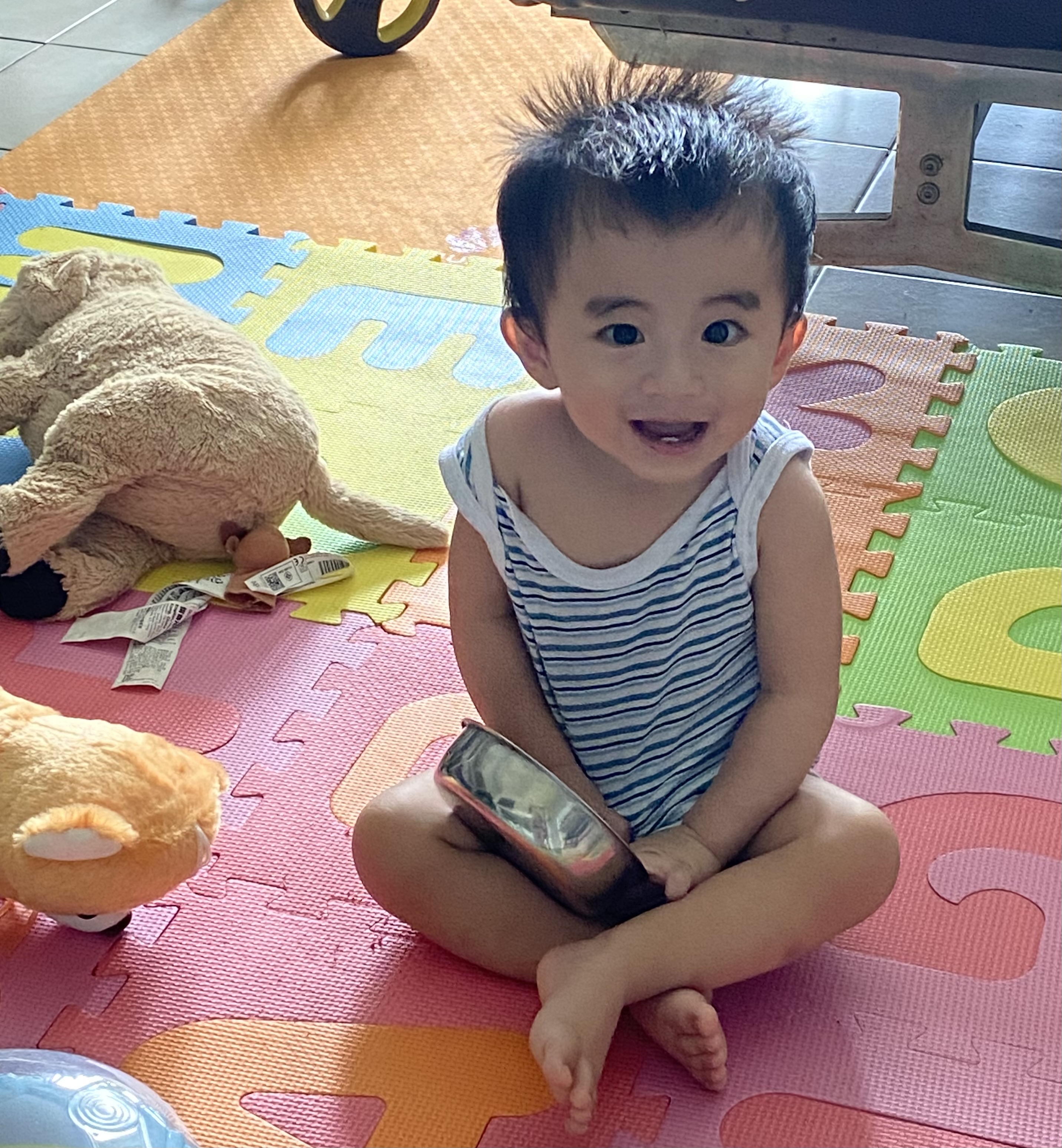 Dorensoy favorite spot was the play area in the living room, covered with a colorful foam mat that seemed like a mosaic of fun.
