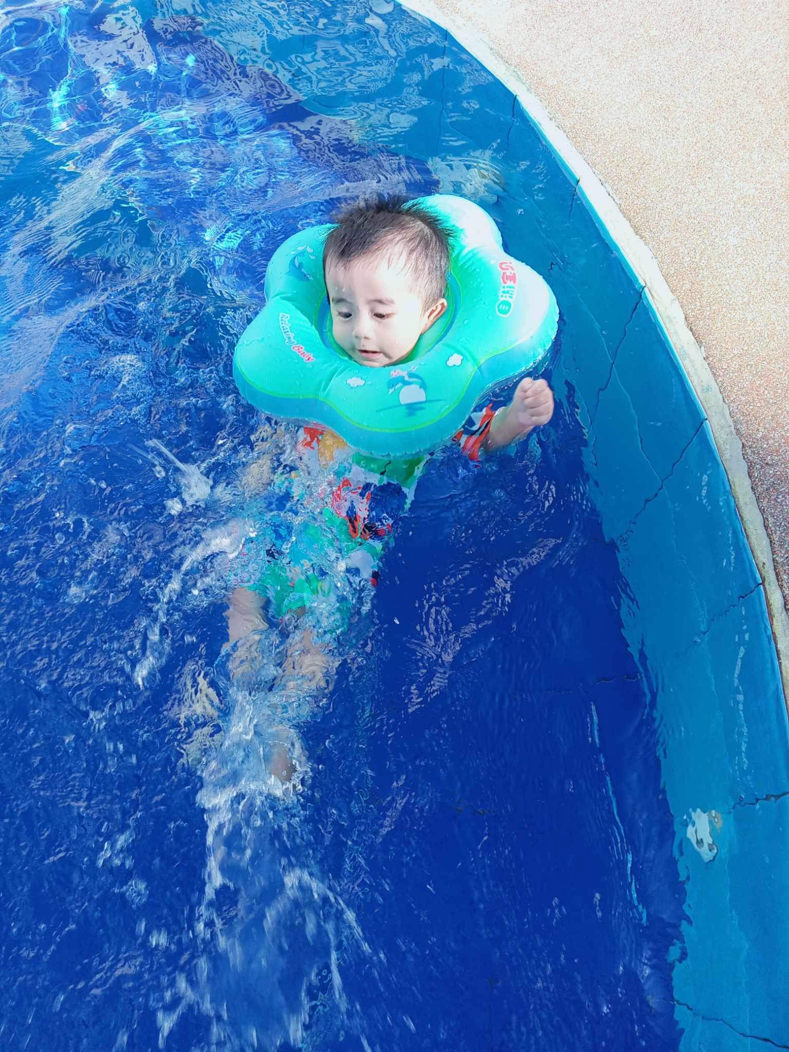 在他周围,泳池的天蓝色画布随着阳光的反射起舞,形成了让他好奇的眼睛感到愉悦的图案。多伦索伊穿着他五彩缤纷的泳装,成为了他小小船只的船长,开始了他在泳池中的伟大冒险。